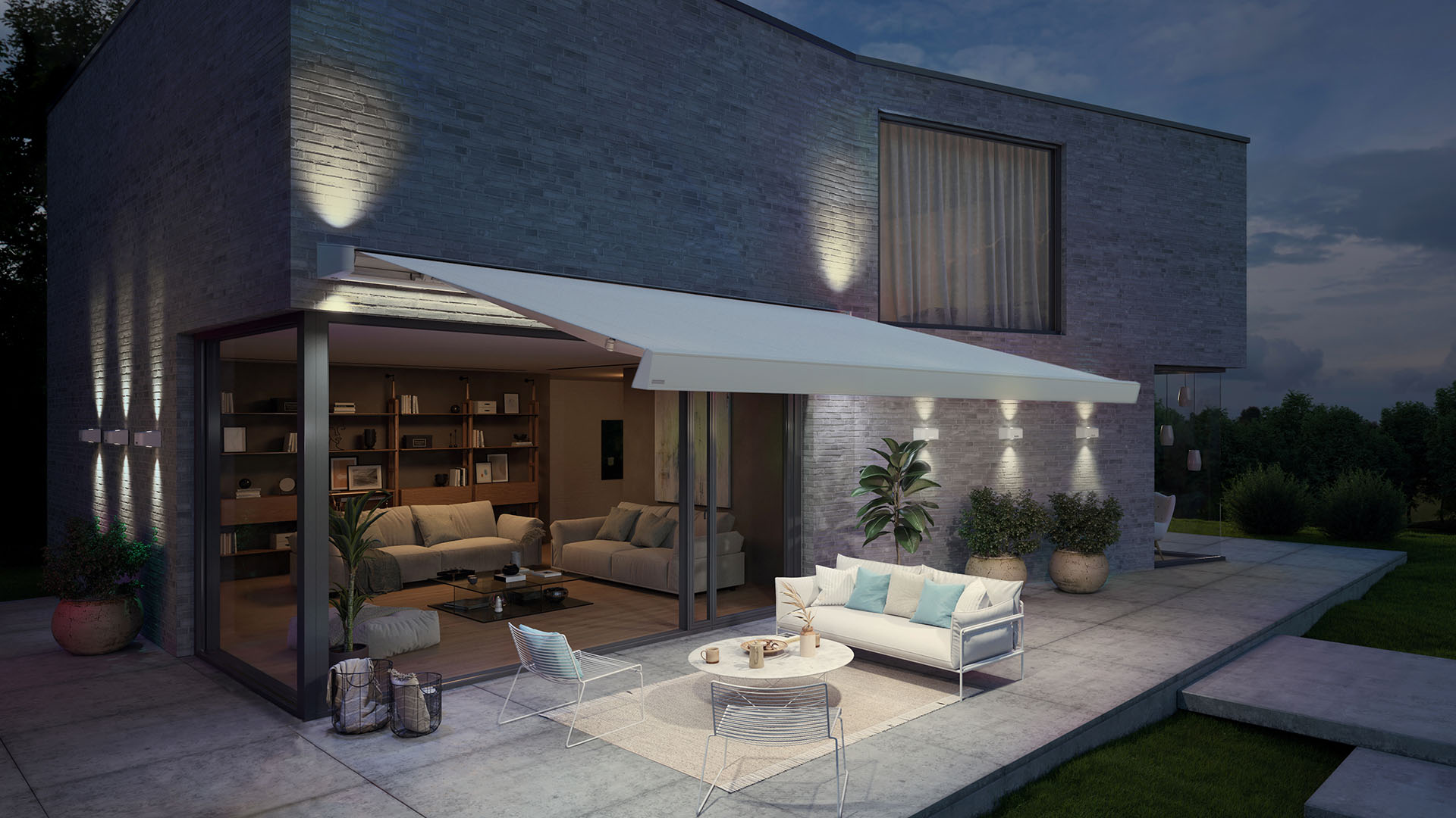 Die neue Kassettenmarkise markilux MX-4 ist da! Sie wurde besonders für große Flächen konzipiert und bietet breite Möglichkeiten für extravagante Beleuchtung. Das avantgardistische Design mit der umlaufenden Sichtblende spiegelt sich in passend dazu kreirten Wandleuchten und bietet damit eine ästhetische Einheit. Das ist markilux Produktdesign - ästhetisch schön und funktional.