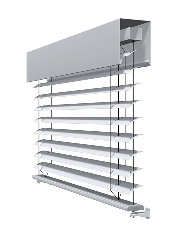 Es wird unterschieden zwischen Raffstore mit flachen Lamellen und Spannseilführung sowie Raffstore mit flachen Lamellen und Schienenführung. Bei den erst genannten steht das filigrane Design mit geringen Pakethöhen im Vordergrund. Bei letzteren die konstruktive Optik, die bei geringen Pakethöhen als Fassadenelement eingesetzt werden kann.