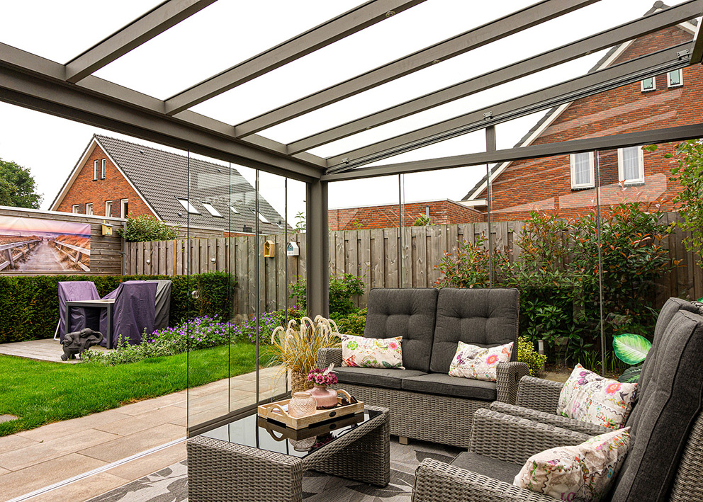 Das Terrassendach TOPLINE von ALUXE ist eine extrem starke Konstruktion für besondere Anforderungen. Aufgrund der stabilen Stützen und der besonders starken Rinne lässt sich ein größerer Stützabstand realisieren der noch mehr freie Sicht bietet.
